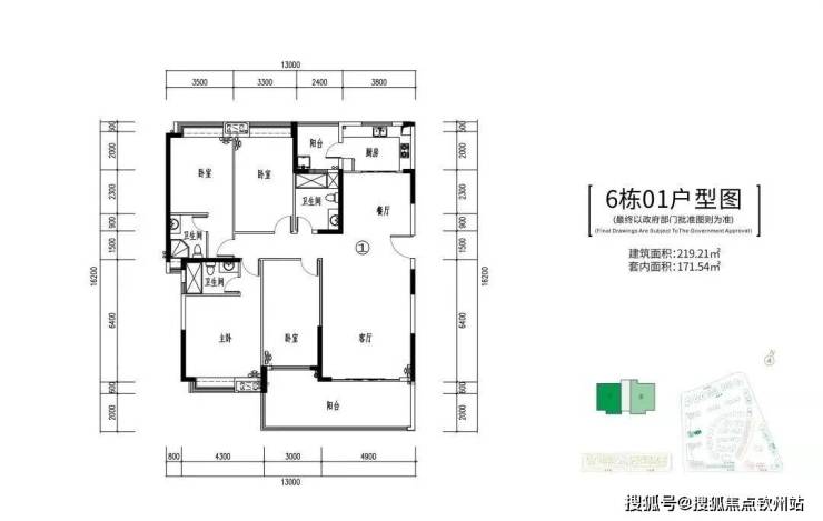 6栋:2-24层、两梯两户,219-234㎡四房