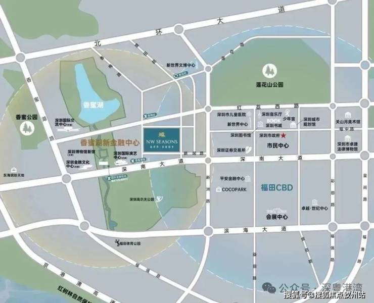 新世界香蜜四季家园位于香蜜湖新金融中心附近,按照目前规划,香蜜湖新金融中心主要分为北区和中区,中区未来将规划落成深圳金融文化中心、深圳博物馆、深圳国际演艺中心三馆,北区是深圳国际交流中心。