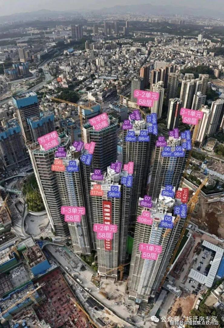 7、鸿荣源观城容积率比较高,都是58-59层的住宅,且栋数之间的楼间距只有18米,整体的居住体验感欠佳。