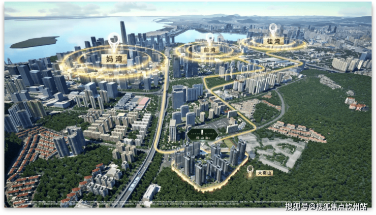 背靠大南山生态居住区,「观山海家园」与桂湾国际金融城+妈湾深港国际服务城两大前海核心区引擎,共同形成了前海「三湾两城一山」的价值制高点,是妥妥的真前海、真核心地段。