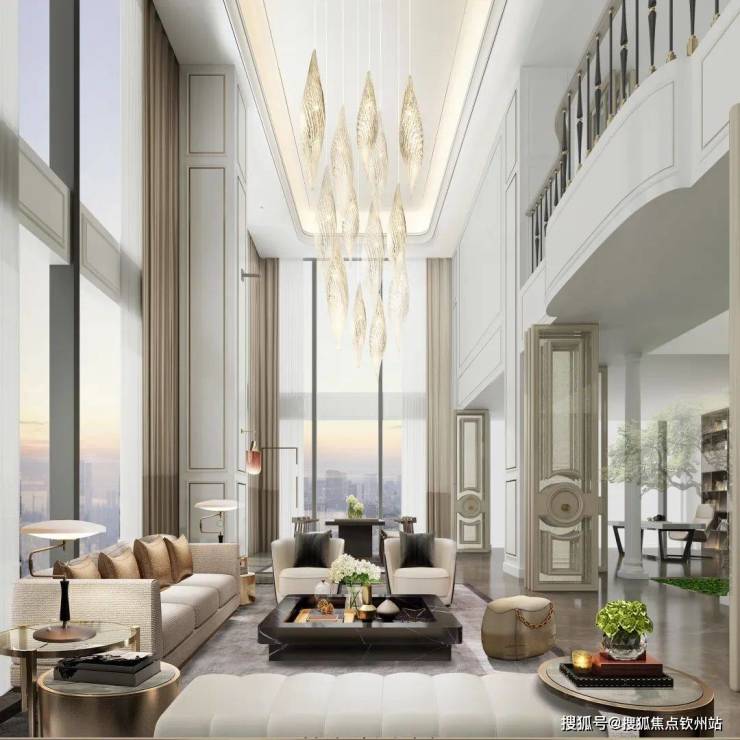 与常规复式单纯凭借两个平层的叠加不同,国贸·礼宾府约7米的挑高空间 ,让整体看起来更加开阔大气、宏伟壮观,也有利于室内的采光和通风。
