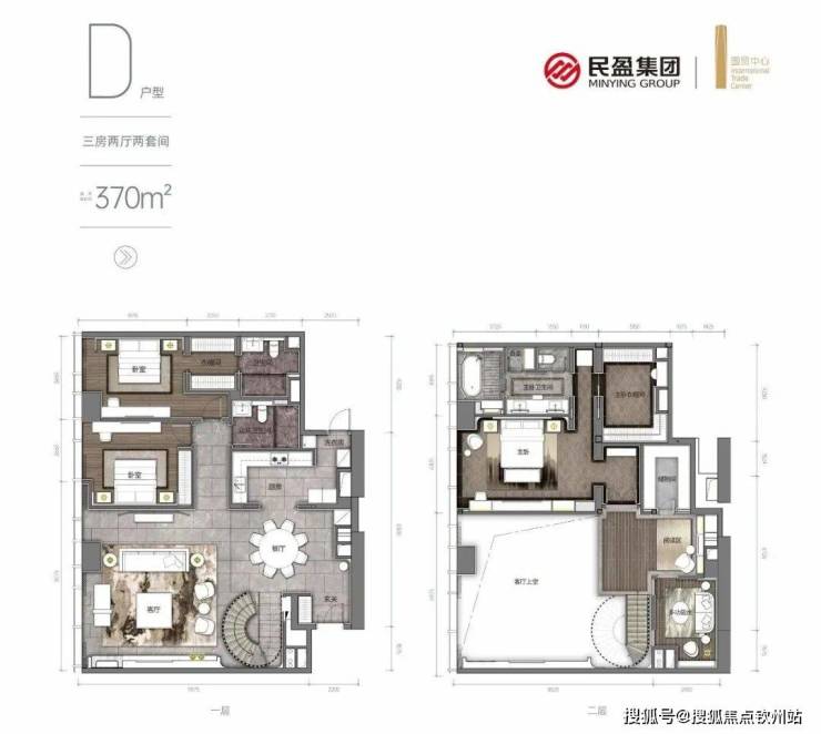 370平户型,三房两厅两套间设计,提供上下复式生活空间。