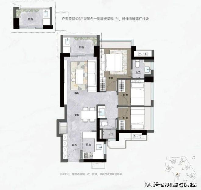 入门级的就是片区内罕有的约83㎡三房两卫,同样拥有主卧套房的私密、双次卧的方正和全屋飘窗,对二胎非常友好。