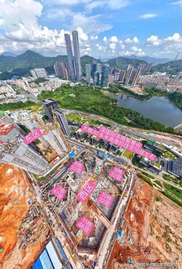 西区:占地2.2万㎡,容积率5.16,包含住宅、商业、幼儿园学校和其它基础配套设施。7栋栋总高47F,3T6户;8栋、9栋、10栋总高32F,2T5户;11栋总高46F,3T6户,2T5户;1栋是幼儿园。