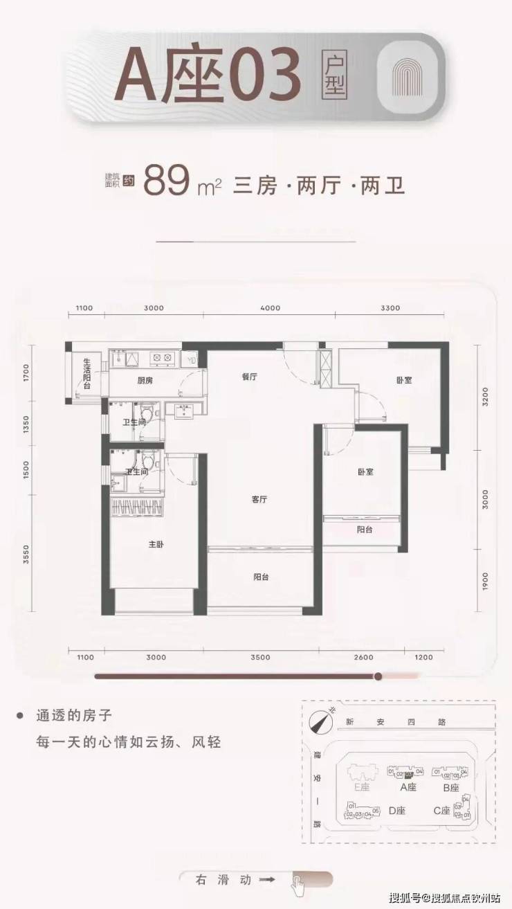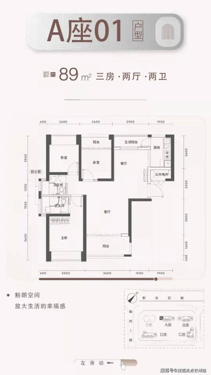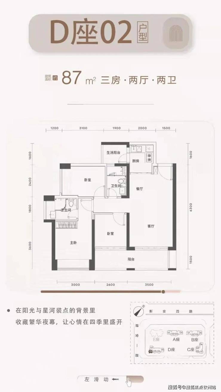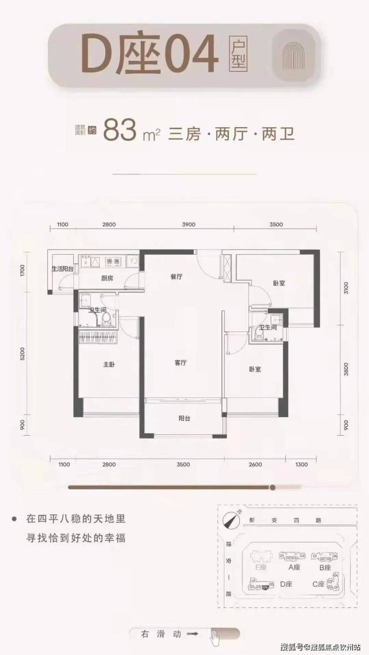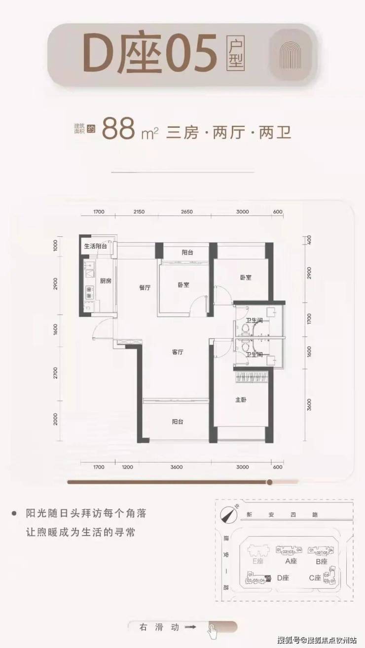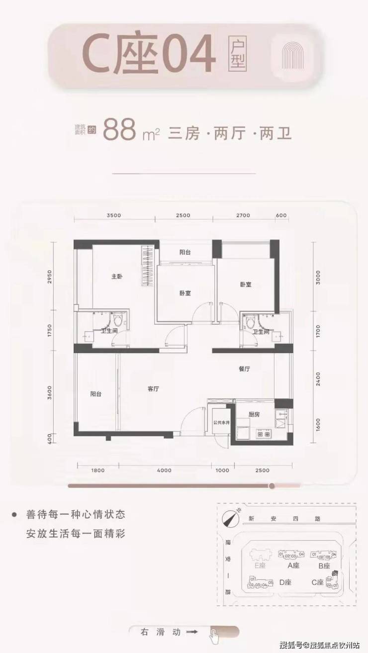 梯户比:A-C座2梯4户,D座2梯5户