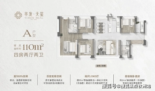 户型与价格:主推建面约 99-114㎡四房两厅两卫产品,得房率高达约 110%。