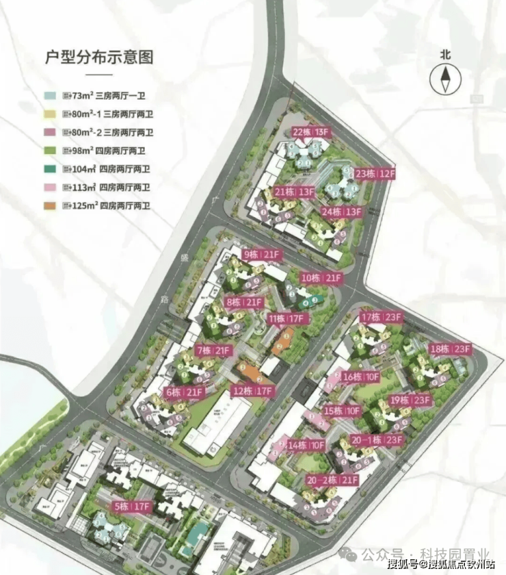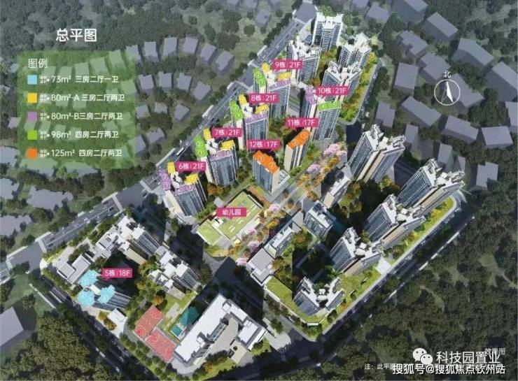 2号地块:6/7/8/9/10栋商品房21F,11/12栋商品房17F,13栋是幼儿园。
