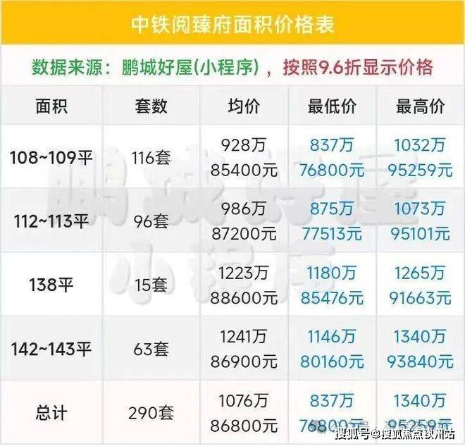备案均价9.06万,折扣是冻资99折+认购98折+12.31号签约99折,那就是0.9605折,折后8.68万的平均价格。折后最低838万起