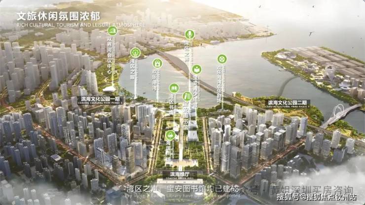 配套优势:毗邻湾区之光摩天轮、青少年宫、图书馆等市级文化地标,与腾讯企鹅岛隔海相望,周边教育资源(宝安中学外国语学校)、医疗及交通配套完善。