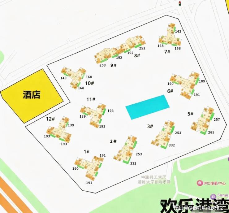 180㎡四房:采用双套房配置,主卧配备270°转角飘窗,同时享有一线海景与欢乐港湾公园双重景观资源。此户型兼顾了家庭成员的空间私密性与共享性,适合多代同堂家庭。