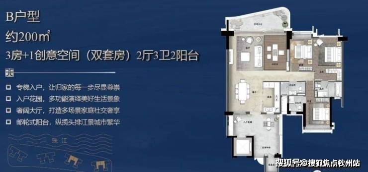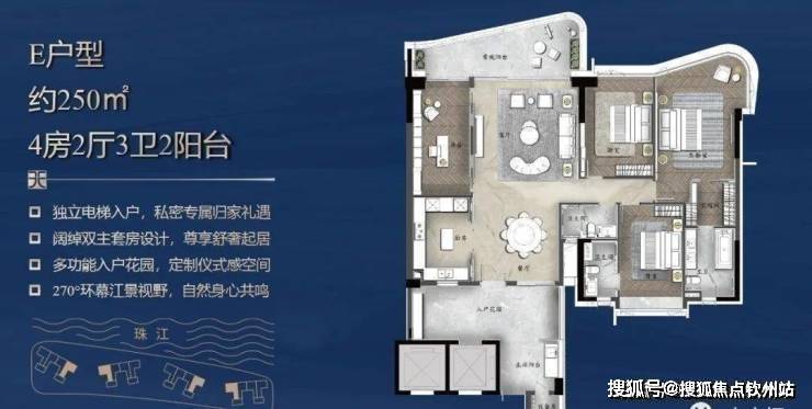 【天启产品销售信息】『天启』组团面积约140-270㎡环幕临江大平层,坐拥江景第一排,眺望小蛮腰,享500米宽阔无遮挡江景视野,并邀请三大全球知名设计大师倾力打造,并配备12大国际一线品牌交标,专梯专户四房双套房设计,世界灵感前沿作品礼献广州!