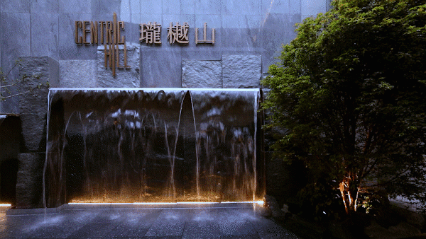 大门是山林水石设计,而车行出入口则设计了酒店级回旋处落客区,跟「胤璞」很像。