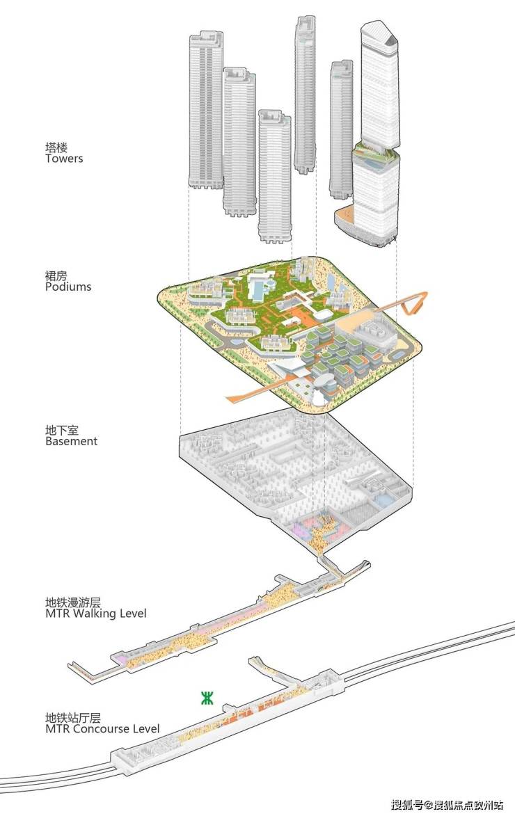 设计以“山海连城、湾区门户、艺术街区”为整体框架,试图将自然景观与人文艺术相融合。具体通过三个策略来实现:一是让高层建筑后退,留出滨海地面空间,形成小尺度商业文化街区;二是规划250米高的超塔作为地标,与周边高楼共同勾勒城市天际线;三是构建立体交通网络,连接地铁、商业与住宅,提升出行便利。