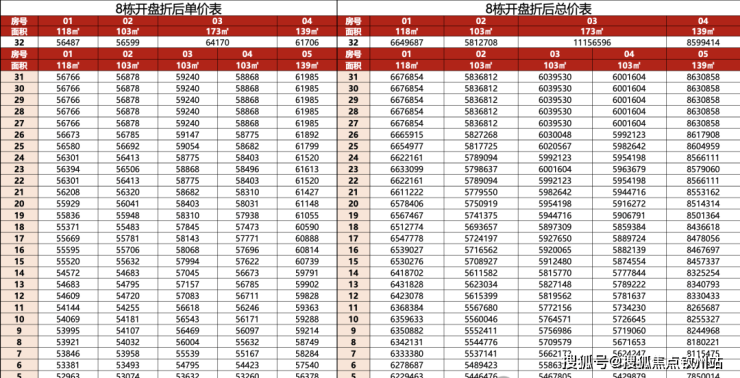 139㎡,31套,均价6万/㎡,开盘5.4-6.2万/㎡,总价756-863万