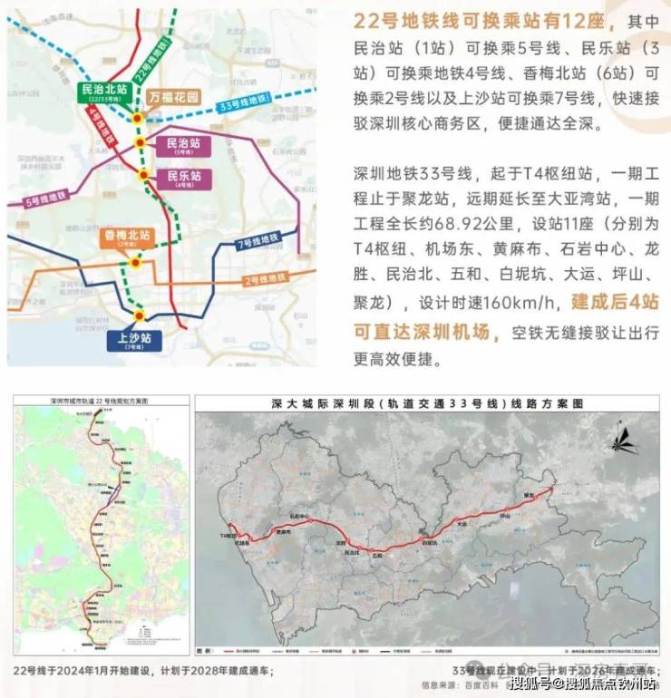 项目距离地铁口仅约200米,乘坐地铁22号线(在建中,预计2028年通车)南行,5站到福田,9站直达福田上沙站,还可便捷换乘5号线、4号线、2号线、7号线,北行直抵东莞;乘坐地铁33号线(在建中,预计2026年通车)5站可直达深圳机场。