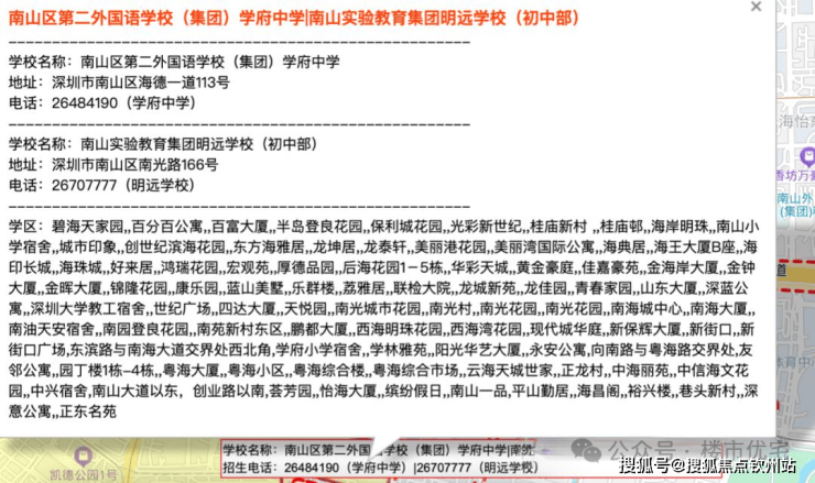处南二外学府一小和南二外学府中学学区范围内,直线距离500米范围内有省一级学校深圳南山中加学校(学区范围如有变动,以南山区教育局最新颁布政策为准)