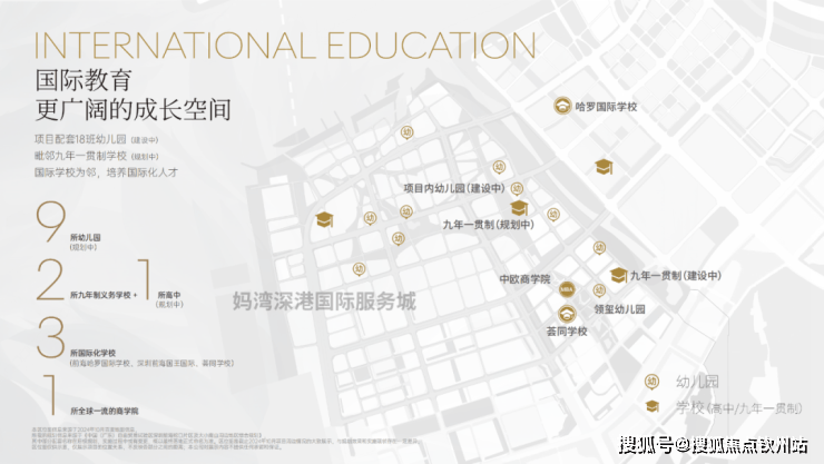 学校配套:湾啟紫荆府自带1所18班幼儿园,东南侧规划有1所九年制36班公办学校(待建),目前还没公布,大概率也是南二外集团校区,会跟紫荆府同步交付;另外在东南侧距离700米处有一所南山第二外国语学校创新学校妈湾校区(在建,预计明年首届招生)。