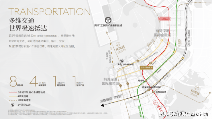 交通配套:湾啟紫荆府距离5号地铁线“妈湾站”约550米,步行5分钟即可到达,1站到铁路公园站可换乘15号地铁线,深惠城际“前保站”距离约1公里,便捷通行,毗邻听海大道,快速通达南山,福田,宝安。