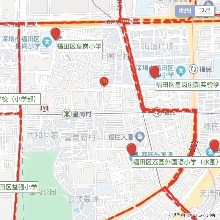 项目按2025年的学区划分来看,小学学区处于皇岗小学、荔园外国语小学(水围),中学学区处于皇岗创新实验学校(初中部)。