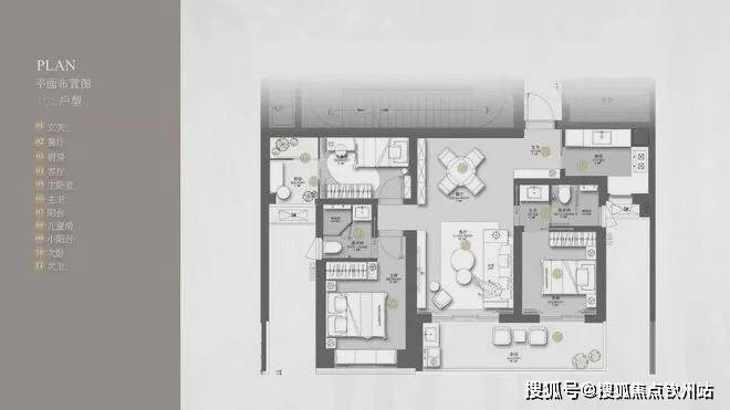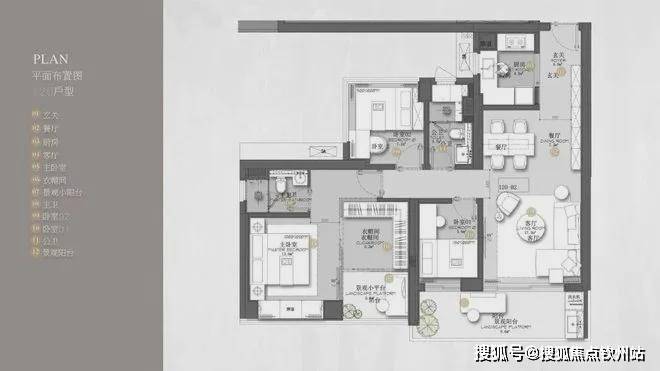 (2)120㎡3+1房2卫:主卧套房超30㎡,可灵活改造空间,适合改善型需求。