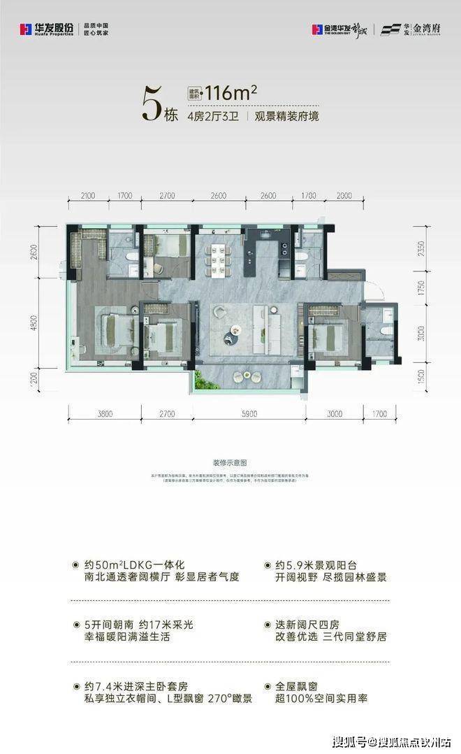 产品方面,建面约91-116㎡超核四房,实现超100%实用率+270°环幕飘窗的空间魔法演绎,惊喜拉满。