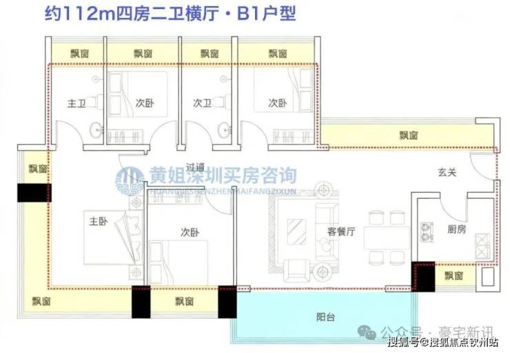 项目规划为纯四房产品,户型面积约105-188㎡,全部为精装修交付。