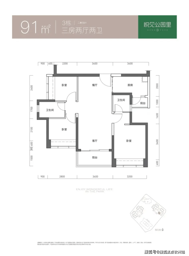91㎡的3房2厅2卫,折后总价344-356万/套,单价3.78-3.91万/㎡。