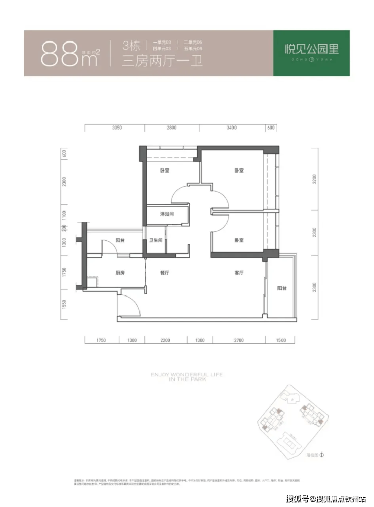 88㎡的3房2厅1卫,折后总价308-324万/套,单价3.5-3.68万/㎡。