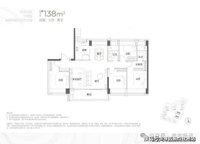 建面约138㎡4房2卫