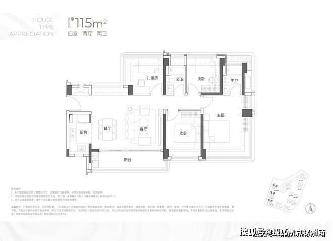 建面约115㎡4房2卫