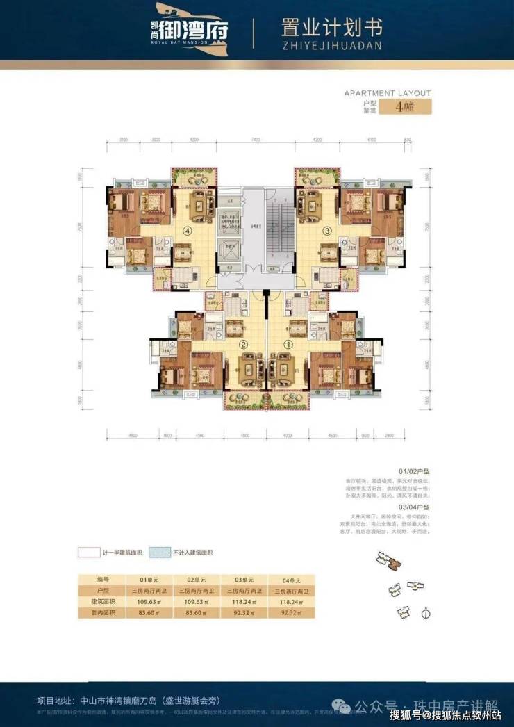 01/02户型 109㎡ 三房两厅两卫|西南向|观卧佛山、斗门大桥