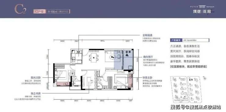 2. 餐客厅一体化,宽景人居尺度;观景双阳台,南北通透清风伴。