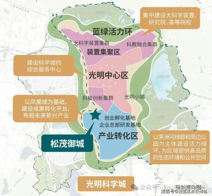 项目位于光明区,光明定位深圳新硅谷,以“一心两区、绿环萦绕”的空间格局,将打造为世界一流科学城。
