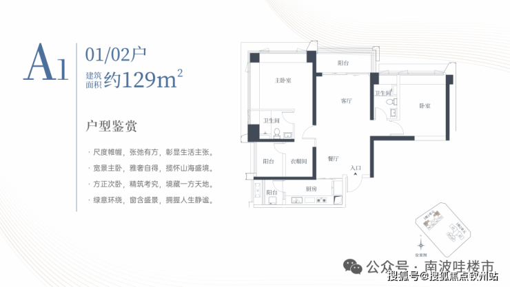 🔹1栋一单元A1、A2户型:面积约为129㎡