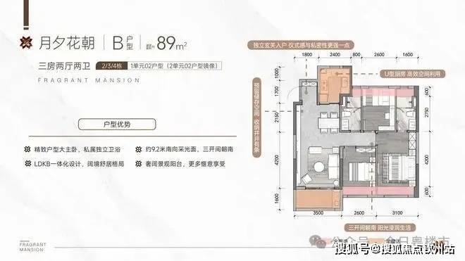 (1)89㎡三居室:户型方正,动静分离,适合刚需家庭。