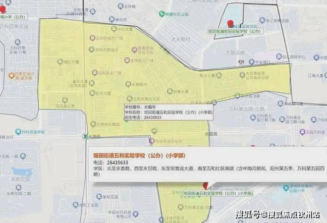 小学学区划分在,科学高中五和实验学校,中学学区划分在坂田实验学校初中部,扬美实验学校初中部,深圳实验坂田校区初中部,科学高中五和实验学校初中部。