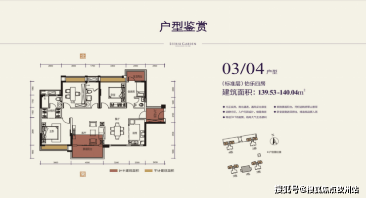乐而居花园:139.53-140.04㎡ 四房两厅三卫 南北通