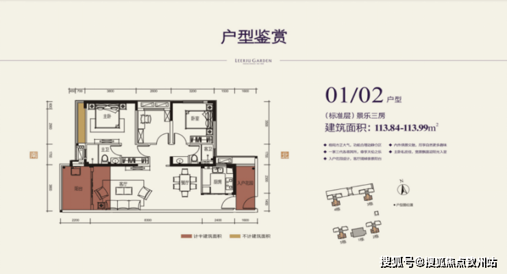 乐而居花园:113.84-113.99㎡ 三房两厅两卫 全南向