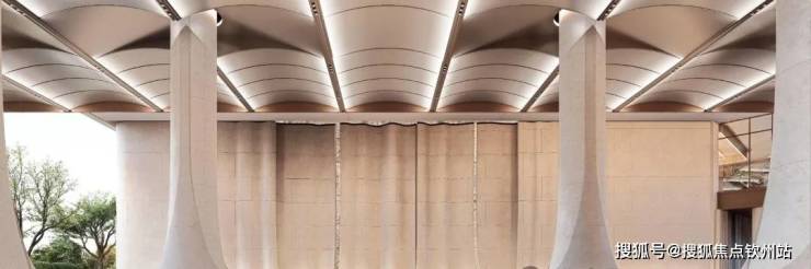 车行入户大门做了殿堂级落客区,与天幕和水景连接,具备豪宅归家奢侈感