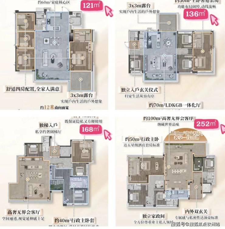 约168㎡:专梯专户,三阳台 + 双“全景舱”,星级双套房。