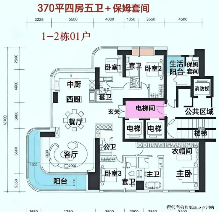 【B栋 370㎡ 】 层高3.5 四套房,东南、47层,5梯2户,约80余套