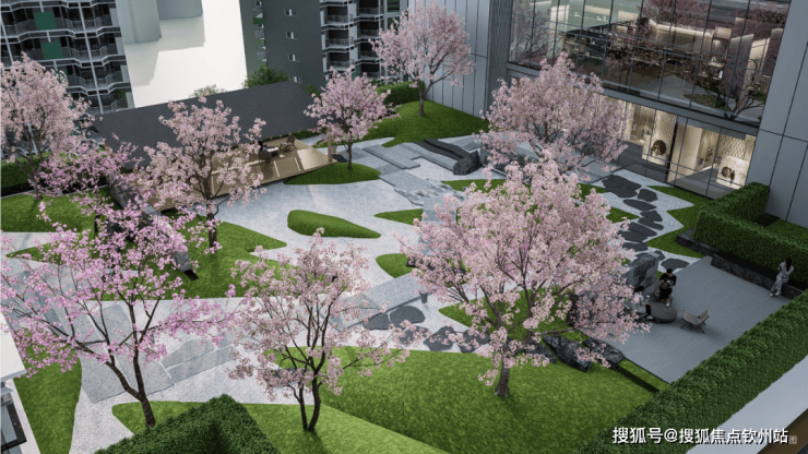 项目的景观园林面积超1万平方米,风格更是独树一帜,以“盛世翰韵”为主题,采用深圳罕有的新东方都市风格,精心打造的城市樱花大道蜿蜒于社区之间,业主们日常漫步其中,落英缤纷处,营造出自然与生活的无声对话,也是这座城市中繁华中心与静谧社区的和谐共生。
