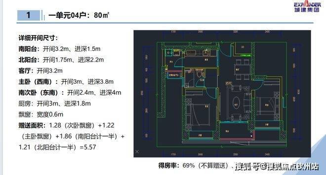 80㎡2房1卫、95㎡3房1卫,