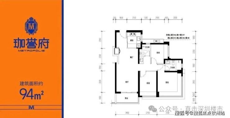 | 约94㎡(横厅)三房两厅两卫【总价约498-521万】