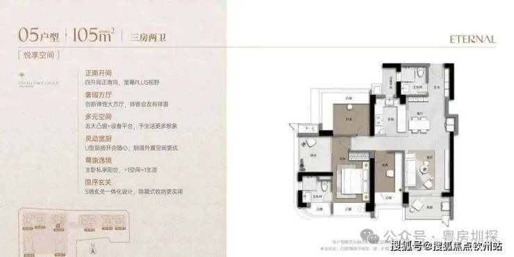 新规产品,销售使用率90%+,近1:1梯户比,大户型双电梯独立电梯厅入户,北区2梯2户,双电梯独立电梯厅入户,南区3梯4户。