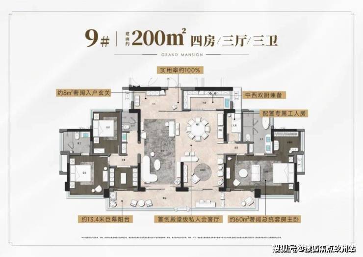 建面约200㎡大平层,堪称“终极豪宅”的王牌作品,完全0过道,实用率100%,比深圳湾1号的大平层还有高(普遍只有80%-85%),也更能感受到大开大合的大宅气场。
