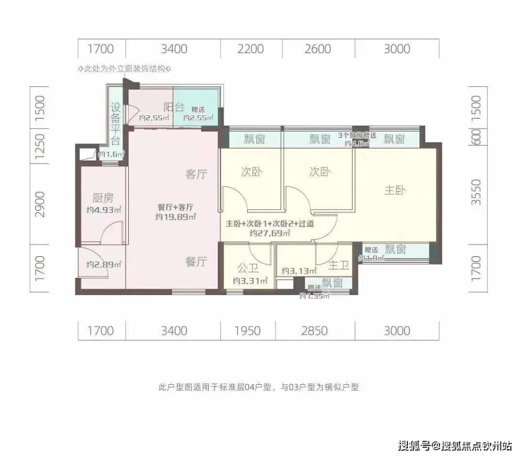 推售产品:建面约81/91㎡3房2厅2卫