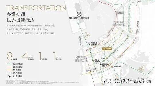 交通配套;距5号线妈湾站约550m,毗邻听海大道,可快速通达南山、福田、宝安及大湾区生活圈;规划8条轨道(城际+城市)、4条快速路、1条跨海通道(建设中)1个海空口岸(规划中)。