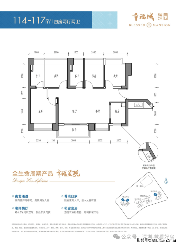 👉建面约114-117㎡4房2厅2卫(横厅)