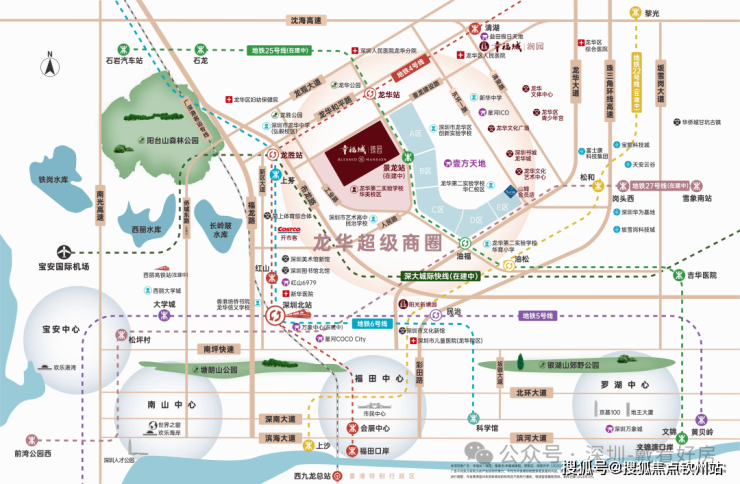 项目占位龙华超级商圈几何正芯,龙华商业中心城市更新北片区,傲踞天赋C位地块。
